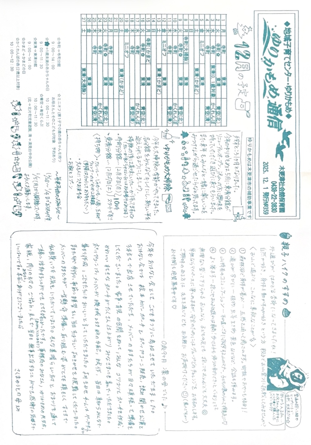 さとの・うみまち子育て支援センタースケジュール表(令和7年12月号) (PDFファイル: 882.9KB)
